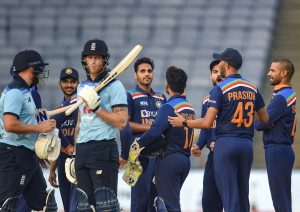 India vs England ODI Series पुणे : भारत ने सैम कुरैन की करिश्माई पारी के बावजूद इंग्लैंड की एक और बड़ा लक्ष्य हासिल करने की उम्मीदों पर पानी फेरकर तीसरे और अंतिम एकदिवसीय अंतरराष्ट्रीय क्रिकेट मैच में रविवार को यहां सात रन से जीत दर्ज करके श्रृंखला 2-1 से अपने नाम की. भारतीय टीम पहले बल्लेबाजी के लिये आमंत्रित किये जाने के बाद 48.2 ओवर में 329 रन बनाकर आउट हो गयी लेकिन इंग्लैंड दूसरे वनडे की तरह बड़ा लक्ष्य हासिल नहीं कर पाया और उसकी टीम नौ विकेट पर 322 रन ही बना पाई.