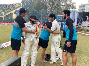 India vs New Zealand : भारत और न्यूजीलैंड के बीच कानपुर में पहला टेस्ट मैच ड्रॉ हो गया है. भारत को आखिरी दिन के आखिरी सत्र में जीत के लिए एक विकेट की दरकार थी, लेकिन न्यूजीलैंड के क्रिकेटर एजाज पटेल (23 गेंद पर 2 रन) और रचिन रवींद्र (91 गेंद पर 18 रन) दीवार बन कर खड़े हो गये. दोनों ने आखिरी विकेट के लिए 52 गेंदों में 10 रन की अटूट साझेदारी की. जीत के लिए न्यूजीलैंड को 284 रन का लक्ष्य मिला था. खेल खत्म होने तक किवी टीम ने नौ विकेट पर 165 रन बनाये थे.