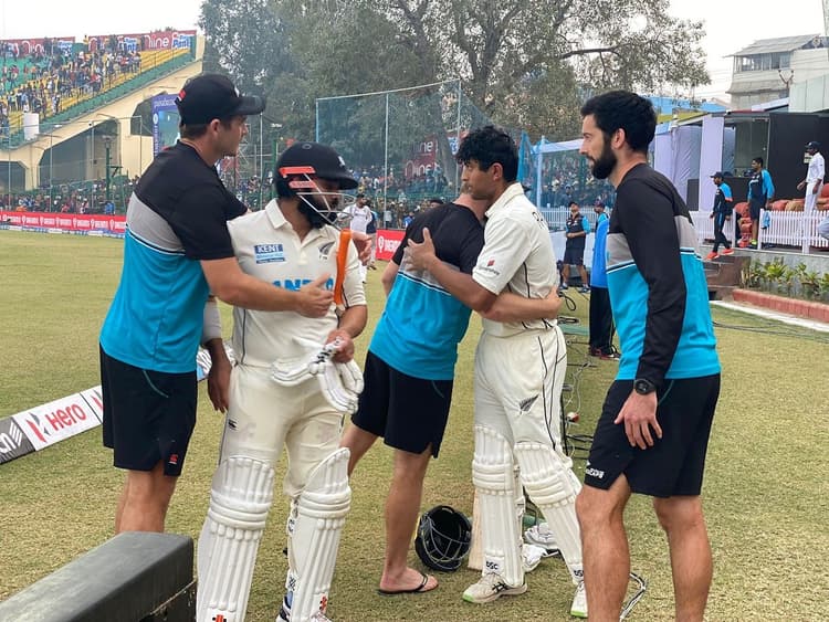 रविचंद्रन अश्विन (Ravichandran Ashwin) और रवींद्र जडेजा ने क्रमश: तीन और चार विकेट लेकर भारत की जीत लगभग तय कर ही दी थी, लेकिन रवींद्र और ऐजाज ने अंगद की तरह क्रीज पर पांव धरकर मेजबान के मंसूबों पर पानी फेर दिया. न्यूजीलैंड का नौवा विकेट 155 के स्कोर पर 90वें ओवर में गिरा और उसके बाद भी आठ ओवर खेले जाने बाकी थे.