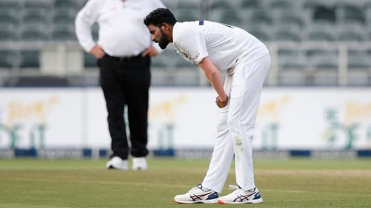 भारत और साउथ अफ्रीका के बीच चल रहे जोहानिसबर्ग टेस्ट के आखिरी सेशन में टीम इंडिया के लिए एक बुरी खबर आयी. दिन का खेल खत्म होने में मात्र सात गेंद बचे थे ऐसे में गेंदबाजी करने आए मोहम्मद सिराज. वहीं अपने ओवर का अंतिम गेंद फेंकते ही मोहम्मद सिराज स्टंप्स के करीब आकर वह रुक गए और अपनी दाईं जांघ पकड़ लिया. सिराज की स्थिति देखकर टीम के फिजियो नितिन पटेल आए और तेजगेंदबाज को मैदान से बाहर ले जाने का फैसला किया. बता दें कि मैच से पहले चोट के कारण ही विराट कहोली इस टेस्ट की हिस्सा नहीं बन पाए.