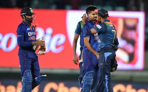 भारत ने श्रीलंका का टी20 सीरीज में 3-0 से सूपड़ा साफ कर दिया. तीसरे और आखिरी टी20 में भारत ने श्रीलंका को 6 विकेट से हराया. भारत की ओर से श्रेयस अय्यर ने सीरीज में हैट्रिक अर्धशतक जमाया. आखिरी मैच में अय्यर ने 45 गेंदों में 9 चौके और एक छक्के की मदद से नाबाद 73 रन बनाये. जबकि रविंद्र जडेजा 15 गेंदों में 3 चौकों की मदद से नाबाद 22 रन बनाये. भारत की ओर से दीपक हुड्डा ने 21 रन की पारी खेली. श्रीलंका की ओर से लाहिरू कुमारा ने दो विकेट चटकाये. जबकि दुष्मंथा चमीरा और चमिका करुणारत्ने ने एक-एक विकेट चटकाये.