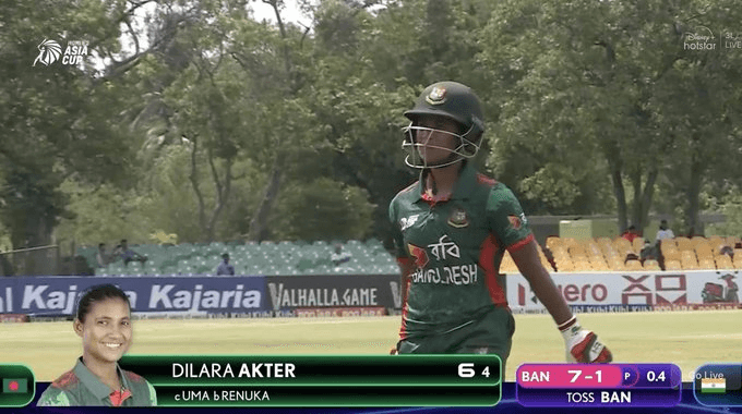INDW vs BANW: बांग्लादेश ने टॉस जीतकर बल्लेबाजी करने का फैसला किया, लेकिन वे बल्ले से खराब रहे. पावरप्ले में भारत की गेंदबाजी का मुकाबला करने के लिए उनके पास उचित रणनीति नहीं थी और वे उस चरण में रेणुका कि गेंदबाजी के सामने टिक नहीं पाए.