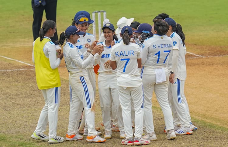 INDW vs SAW Test: हरमनप्रीत कौर की अगुवाई में भारतीय महिला टीम ने एक मात्र टेस्ट मुकाबले में दक्षिण अफ्रीका को 10 विकेट से हरा दिया. पहले बल्लेबाजी करते हुए भारत ने पहली पारी में 603 का बड़ा स्कोर बनाया. यह किसी भी महिला टीम का पहली पारी में सबसे बड़ा स्कोर है. शेफाली वर्मा ने 100 से ज्यादा के स्ट्राइक रेट से दोहरा शतक जड़ा. दूसरी सलामी बल्लेबाज स्मृति मंधाना ने भी शतकीय पारी खेली और 149 रन बनाए. इन दोनों की शानदार पारी के दम पर भारत ने 603 रन बनाकर अपनी पारी घोषित कर दी. भारत ने पहली पारी में अपने 6 विकेट गंवाए.