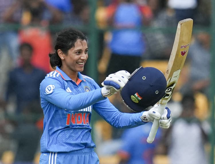 INDW vs SAW: भारतीय महिला टीम की सलामी बल्लेबाज स्मृति मंधाना ने दक्षिण अफ्रीका के खिलाफ वनडे मैच में बुधवार को शतक जड़कर भारत की 4 रनों से जीत में मदद की. उन्होंने सबसे ज्यादा शतक के पूर्व कप्तान मिताली राज के रिकॉर्ड की बराबरी कर ली है. उन्होंने महिला क्रिकेट के इतिहास में अपना नाम दर्ज करा लिया. दूसरे वनडे में एम चिन्नास्वामी स्टेडियम में मंधाना की 136 रनों की शानदार पारी देखने लायक थी. यह उनका सातवां वनडे शतक है. सीरीज के पहले मैच में शतक लगाने के बाद बैक टू बैक दूसरा शतक लगाया. वह वनडे क्रिकेट में यह उपलब्धि हासिल करने वाली पहली भारतीय महिला बन गई हैं.