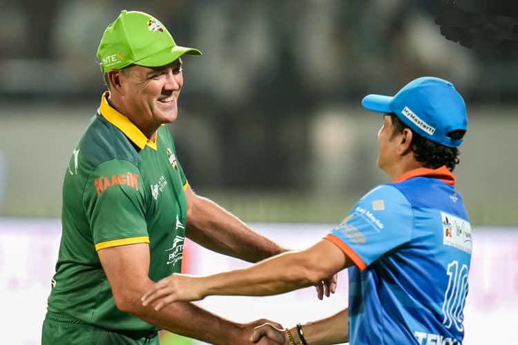 International Masters League 2025: इंटरनेशनल मास्टर्स लीग 2025 में भारत ने लगातार तीसरी जीत दर्ज की है. सचिन की अगुवाई वाली भारतीय टीम ने दक्षिण अफ्रीका मास्टर्स को 8 विकेट से रौंद दिया है. सबसे बड़ी बात है कि इस लीग की पहली हैट्रिक भारतीय तेज गेंदबाज राहुल शर्मा के नाम रही. उन्होंने तीन महान क्रिकेटरों को आउट कर यह उपलब्धि हासिल की. हैट्रिक पर आउट होने वालों में सलामी बल्लेबाज हाशिम अमला (9), दक्षिण अफ्रीका के कप्तान जैक्स कैलिस (0) और जैक्स रूडोल्फ (0) शामिल हैं. यह इस टूर्नामेंट की पहली हैट्रिक है.