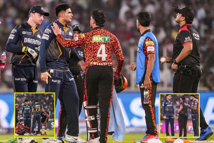 IPL 2025 GT vs SRH- Abhishek Sharma Calms Down Shubman Gill: आईपीएल 2025 के 51वें मुकाबले में गुजरात टाइटंस (GT) ने सनराइजर्स हैदराबाद (SRH) को 38 रन से हराया. मैच में दोनों टीमों के ओपनरों ने शानदार पारियां खेलीं GT के कप्तान शुभमन गिल ने 38 गेंदों में 76 रन बनाए, जबकि SRH के अभिषेक शर्मा ने 41 गेंदों में 74 रन की तूफानी पारी खेली. पंजाब से ताल्लुक रखने वाले इन दोनों खिलाड़ियों के बीच मैदान पर दो मजेदार पल भी देखने को मिले. पहला विकेट की डीआरएस अपील पर शुभमन गिल अंपायर से उलझ गए उस समय शर्मा उन्हें शांत कराते रहे और उसके बाद जब अभिषेक मैदान पर फिजियो की मदद ले रहे थे, उस दौरान गिल ने उन्हें मजाक में हल्के से ‘किक’ मार दी.