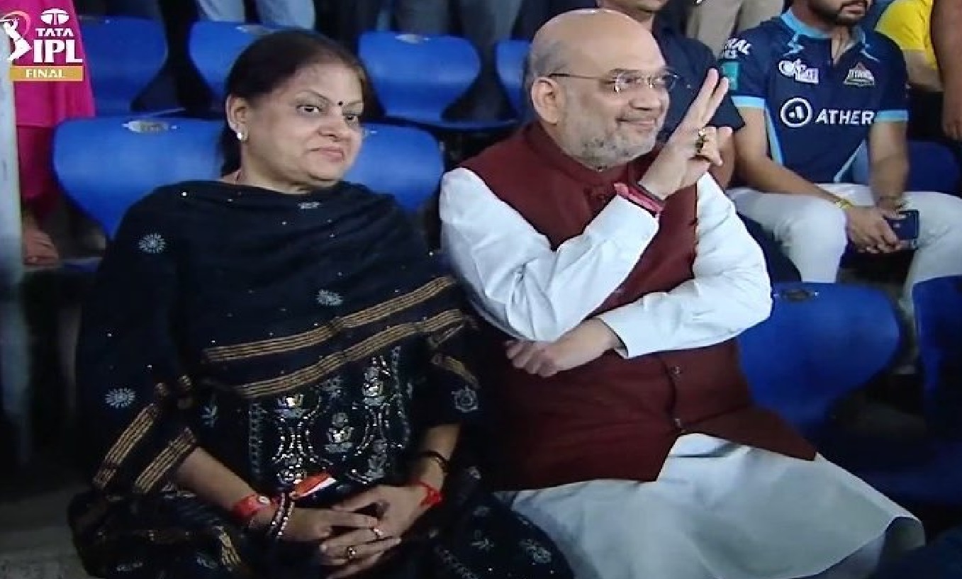 आईपीएल 2022 (IPL 2022) का फाइनल मुकाबला गुजरात टाइटंस और राजस्थान रॉयल्स के बीच खेला गया. दुनिया के सबसे बड़े स्टेडियम में खेले गये फाइनल मुकाबले को देखने के लिए केंद्रीय गृह मंत्री अमित शाह (Amit Shah) भी अपनी पत्नी संग पहुंचे. जब राजस्थान रॉयल्स की टीम बल्लेबाजी कर रही थी, उस समय कैमरे की नजर अमित शाह और उनकी पत्नी पर गयी.