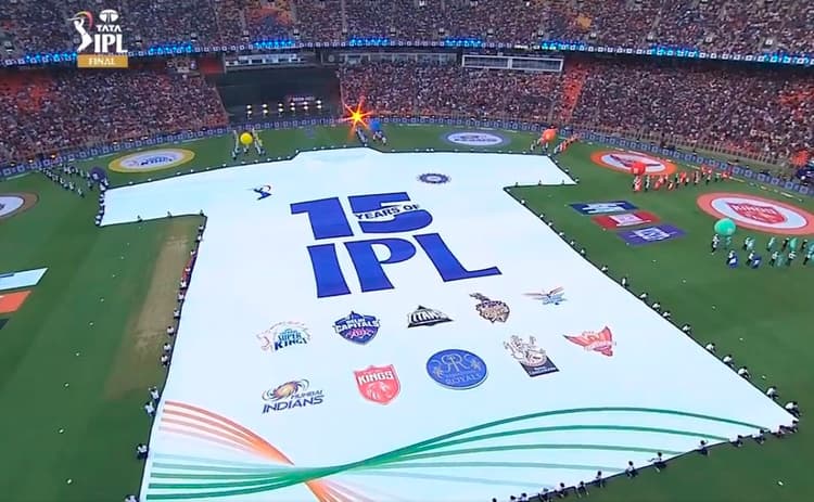 दरअसल फाइनल मुकाबला शुरू होने से पहले टीवी स्क्रीन पर एक विशालआईपीएल जर्सी को दिखाया गया. दुनिया के सबसे बड़े नरेंद्र मोदी स्टेडियम में जब जर्सी को फैलाया गया, तो लगभग पूरा मैदान उस विशाल जर्सी ने कवर कर लिया. बता दें बीसीसीआई ने आईपीएल की सबसे बड़ी सर्जी बनाया है. उस जर्सी में आईपीएल की सभी 10 टीमें के नाम और लोगो अंकित किये गये हैं. ओपनिंग सेरेमनी शुरू होने से पहले टीम इंडिया के पूर्व खिलाड़ी और पूर्व मुख्य कोच रवि शास्त्री ने बीसीसीआई अध्यक्ष सौरव गांगुली, सचिव जय शाह और आईपीएल अध्यक्ष बृजेश पटेल का नाम पुकारा. तीनों दिग्गजों ने वर्ल्ड रिकॉर्ड का प्रमाणपत्र ग्रहण किया.