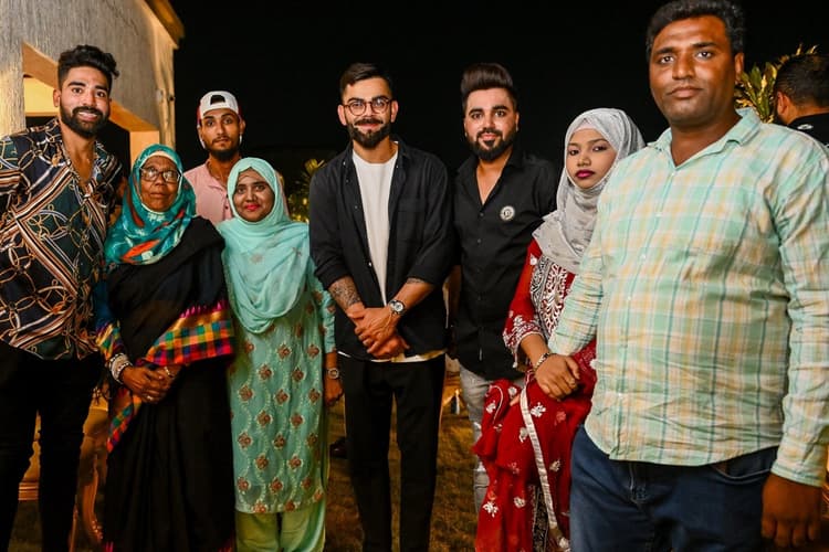 रॉयल चैलेंजर्स बैंगलोर के स्टार तेज गेंदबाज मोहम्मद सिराज ने हाल ही में हैदराबाद में नया घर खरीदा है. वहीं आरसीबी को अपना अगला मैच सनराइजर्स हैदराबाद के होमग्राउंड हैदराबाद में ही खेलना है. इसी मैच से पहले आरसीबी की पूरी टीम सिराज के नए घर बिरयानी पार्टी करने पहुंची. सिराज के घर की इस पार्टी में विराट कोहली, फाफ डुप्लेसी, केदार जाधव, संजय बांगड़ समेत पूरी टीम नजर आई.