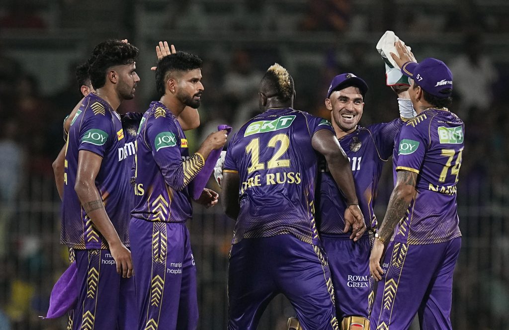 सनराइजर्स को पहला झटका अभिषेक शर्मा के रूप में पहले ही ओवर में लगा. दूसरा विकेट सनराइजर्स को ट्रैविस हेड के रूप में दूसरे ही ओवर में लगा. राहुल त्रिपाठी के रूप में टीम को तीसरा झटका पांचवें ओवर में लगा, तब टीम का स्कोर केवल 23 रन था. 47 रन के स्कोर पर नितीश रेड्डी भी हर्षित राणा की गेंद पर आउट हो गए. एडन मारक्रम ने थोड़ी बहादुरी दिखाई, लेकिन वह भी 20 रन बनाकर आंद्रे रसेल की गेंद पर आउट हो गए. अगली बारी शाहबाज अहमद की थी, जो 13 रन बनाकर वरुण चक्रवर्ती की गेंद पर विकेटकीपर गुरबाज को कैच थमा बैठे.