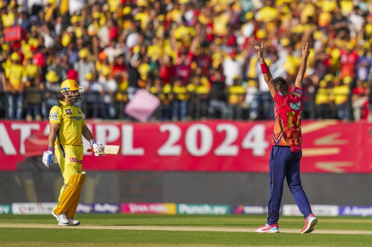 IPL 2024: रविवार को चेन्नई सुपर किंग्स और पंजाब किंग्स के मुकाबले में महेंद्र सिंह धोनी (MS Dhoni) के फैंस को बड़ा झटका लगा. बल्लेबाजी करने आए एमएस धोनी पहली ही गेंद पर बोल्ड हो गए. हर्षल पटेल (Harshal Patel) ने उनका विकेट लिया. हर्षल ने एक शानदार इनस्विंग स्लोवर वन डाली, जिसे माही समझ नहीं पाए और गेंद ऑफ स्टंप को छूते हुए निकल गई. हालांकि हर्षल ने धोनी का विकेट लेने के बाद कोई जश्न नहीं मनाया. पूरा स्टेडियम एकदम शांत हो गया था. कोई शोर नहीं. धोनी ने एक बार पीछे मुड़कर देखा और चुपचाप डगआउट की ओर बढ़ गए. सीएसके ने पहले बल्लेबाजी करते हुए 167 रन बनाए. जवाब में पंजाब की टीम 20 ओवर में 9 विकेट पर 139 रन ही बना सकी. सीएसके ने मुकाबला 28 रन से जीत लिया.