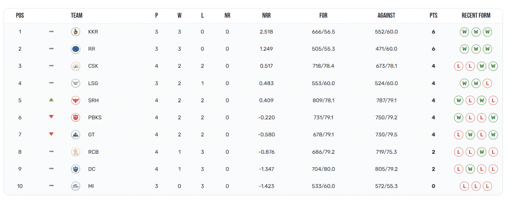 IPL 2024 Points Table: केकेआर टॉप पर, हार्दिक की कप्तानी वाली मुंबई इंडियंस पिछड़ी