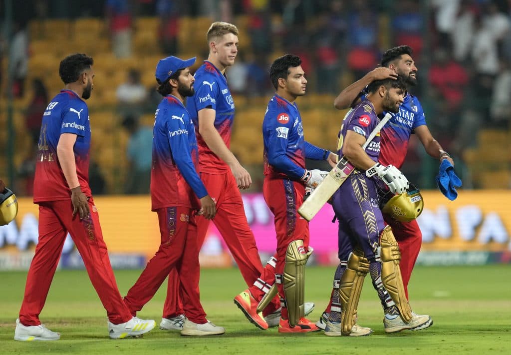 आरसीबी के 183 रन के लक्ष्य का पीछा करते हुए नाइट राइडर्स ने वेंकटेश (50 रन, 30 गेंद, 4 छक्के, 3 चौके) और नारायण (47 रन, 22 गेंद, 5 छक्के, 2 चौके) की तूफानी पारियों से 19 गेंद शेष रहते तीन विकेट पर 186 रन बनाकर आसान जीत दर्ज की. नारायण और फिल सॉल्ट (30 रन, 20 गेंद, 2 छक्के, 2 चौके) ने पहले विकेट के लिए 6.3 ओवर में 86 रन जोड़कर टीम को ताबड़तोड़ शुरुआत दिलाई.