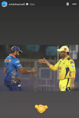 IPL 2024 से पहले चेन्नई से एमएस धोनी की कप्तानी छोड़ने के बाद रोहित ने इसपर अपनी प्रतिक्रिया दी. उन्होंने इस खबर के बाद अपने इंस्टाग्राम के स्टोरी में एमएस धोनी के साथ एक तस्वीर लगाई जिसमें, एमएस धोनी रोहित के साथ हाथ मिला रहे हैं. सायद ये दर्शाता है की, ये 'एक युग का अंत' है.