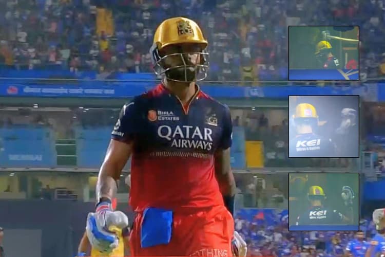 कोहली शुरुआत से ही आक्रामक मूड में नजर आए और उन्होंने मैदान के चारों ओर शॉट्स लगाए. महज 29 गेंदों में अपना अर्धशतक पूरा करने वाले कोहली बड़ी पारी की ओर बढ़ रहे थे और लग रहा था कि वह मुंबई के खिलाफ एक यादगार शतक जड़ देंगे. लेकिन 15वें ओवर में टाइम-आउट के ठीक बाद जब वह MI के कप्तान हार्दिक पांड्या (Hardik Pandya) का सामना करने उतरे, तब उन्होंने एक जोखिम भरा शॉट खेलने की कोशिश की. लेग साइड की ओर खेला गया उनका शॉट टॉप-एज हो गया और डीप स्क्वायर लेग पर खड़े फील्डर नमन धीर ने आसान कैच लेकर कोहली की पारी पर ब्रेक लगा दिया. Angry Virat Kohli Smashes Bat and Throws Gloves.