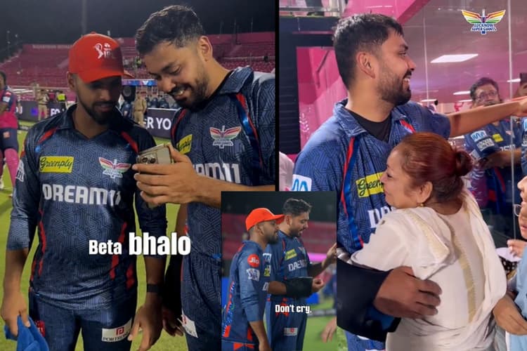 IPL 2025, Avesh Khan met his Emotional Mother after LSG vs RR match: राजस्थान रॉयल्स के खिलाफ हुए मुकाबले में लखनऊ सुपर जायंट्स के तेज गेंदबाज आवेश खान ने शानदार प्रदर्शन किया. उन्होंने अहम मौके पर संयम दिखाते हुए किफायती गेंदबाजी करते हुए यशस्वी जायसवाल और रियान पराग के विकेट लिए. उसके बाद फाइनल ओवर में जरूरी 12 रन का बचाव करते हुए केवल 9 रन दिए, जिसकी बदौलत एसएजी ने 2 रन से मुकाबले को अपने नाम किया. उनकी शानदार गेंदबाजी के लिए प्लेयर ऑफ द मैच का खिताब भी दिया गया. इस मैच के बाद का एक भावुक पल तब देखने को मिला जब आवेश की मां अपने बेटे की परफॉर्मेंस से भावुक होकर रो पड़ीं. इस मौके से पहले टीम के उपकप्तान निकोलस पूरन (Nicholas Puran) ने आवेश की मां से फोन पर बात कर उन्हें ढाढ़स बंधाया.