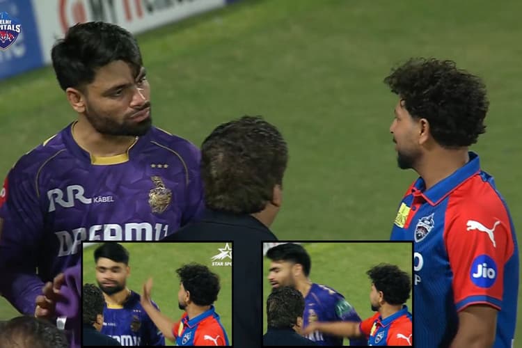 IPL 2025 Kuldeep Yadav Slaps Rinku Singh: आईपीएल 2025 में मंगलवार को दिल्ली कैपिटल्स और कोलकाता नाइट राइडर्स के बीच सीजन का 48वां मुकाबला खेला गया. इस मैच में केकेआर ने शानदार खेल दिखाते हुए 14 रन से मुकाबला जीत लिया. हालांकि इस मैच के खत्म होने के बाद एक विवाद सामने आ गया, जिसमें कुलदीप यादव रिंकू सिंह को थप्पड़ मारते दिखाई दे रहे हैं. कुलदीप और रिंकू एक ही राज्य (उत्तर प्रदेश) से ताल्लुक रखते हैं लेकिन अलग-अलग आईपीएल टीमों का प्रतिनिधित्व करते हैं. मैच के खत्म होने के बाद बातचीत करते नजर आए, तभी कुलदीप ने रिंकू को अचानक थप्पड़ मार दिया. इसके बाद उन्होंने दोबारा यह हरकत की.