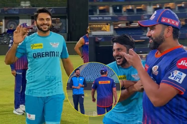 Rohit Sharma and Shardul Thakur Meetup: IPL 2025 में लखनऊ सुपर जायंट्स (LSG) और मुंबई इंडियंस (MI) के बीच 4 अप्रैल को इस सीजन का 16वां मुकाबला खेला जाना है. हार्दिक पांड्या की एमआई पलटन मुंबई में केकेआर के खिलाफ शानदार जीत दर्ज करने के बाद ऋषभ पंत की टीम से भिड़ेगी. दोनों टीमों के बीच अब तक आईपीएल में अब तक 6 मुकाबले हुए हैं, जिसमें लखनऊ का पलड़ी भारी दिखता है. उसने अब 5 मैचों में जीत हासिल की है, जबकि 1 जीत के साथ मुंबई कमजोर दिखती है. हालांकि इस कांटेदार मुकाबले से पहले एकाना क्रिकेट स्टेडियम में होने वाले मुकाबले से पहले का माहौल थोड़ा हल्का-फुल्का और मजेदार हो गया.