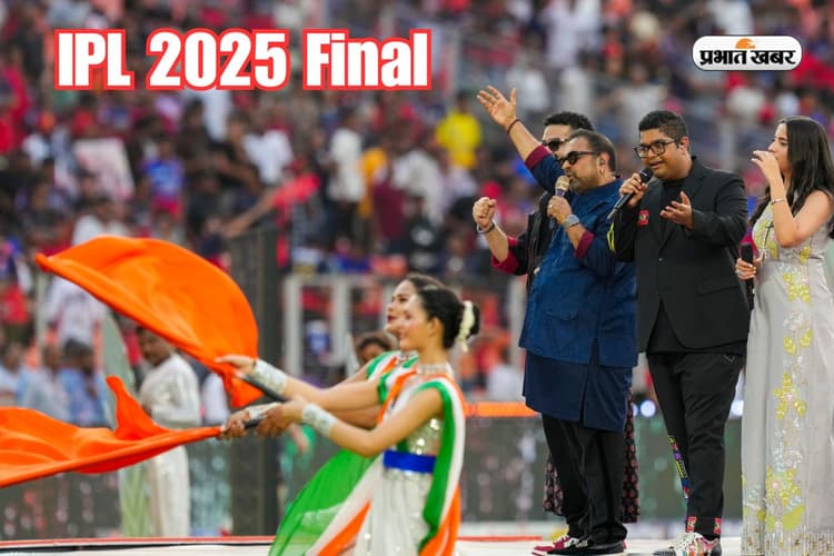 IPL 2025 Final: अहमदाबाद के नरेंद्र मोदी स्टेडियम में इंडियन प्रीमियर लीग 2025 (IPL 2025) का फाइनल मुकाबला खेला जा रहा है. मैच से पहले रंगारंग कार्यक्रम का आयोजन किया गया. इसमें मशहूर म्यूजिक कंपोजर शंकर महादेवन (Shankar Mahadevan) ने समां बांध दिया. एक से बढ़कर एक देशभक्ति गीतों से पूरा स्टेडियम गूंज उठा. स्टेडियम में मौजूद एक लाख से अधिक दर्शकों ने इस कार्यक्रम का लुत्फ उठाया और पूरे स्टेडियम में भारत माता की जय के जयकारे लगने लगे. भारतीय सेना को हर ओर से सलाम किया जा रहा था. हाल की पाकिस्तान पर हुए ऑपरेशन सिंदूर की गूंज पूरे स्टेडियम में सुनाई पड़ रही थी.