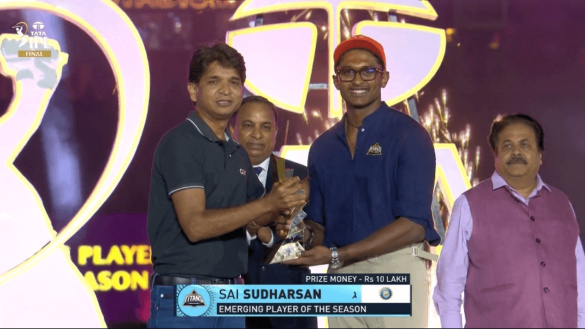 सीजन का इमर्जिंग प्लेयर: साई सुदर्शन (गुजरात टाइटंस) पूरे सीजन में शानदार प्रदर्शन करते हुए 759 रन.