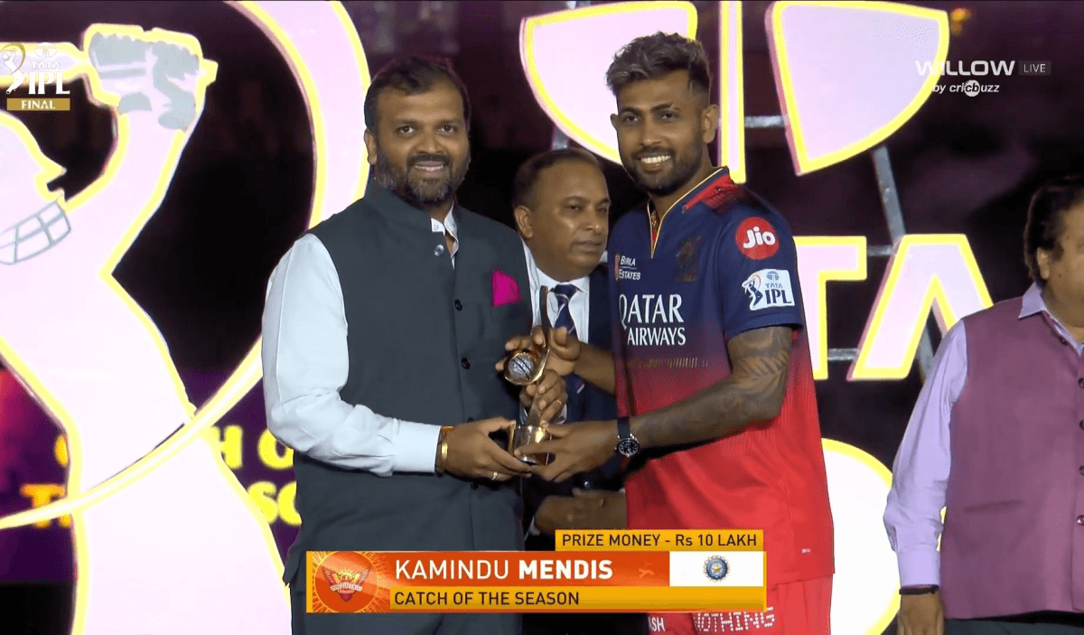 सीजन का सर्वश्रेष्ठ कैच: कमिंदु मेंडिस (सनराइजर्स हैदराबाद) को 25 अप्रैल को चेन्नई में खेले गए CSK बनाम SRH मैच में डेवाल्ड ब्रेविस का शानदार कैच के लिए खिताब दिया गया.