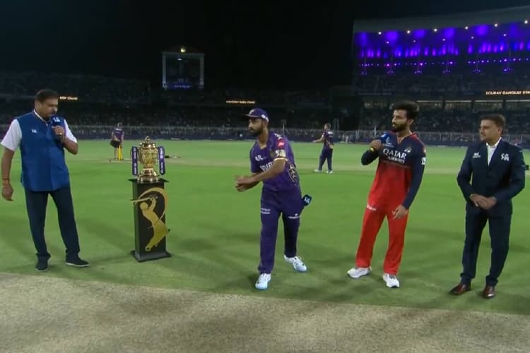 IPL 2025 KKR vs RCB: इंडियन प्रीमियर लीग 2025 का आगाज हो गया है. पहला मुकाबला डिफेंडिंग चैंपियन कोलकाता नाइट राइडर्स और रॉयल चैलेंजर्स बेंगलुरु के बीच खेला जा रहा है. इस मुकाबले के लिए ऐतिहासिक ईडन गार्डन्स में क्रिकेट फैंस खचाखच भरे हैं. भारी बारिश की चेतावनी के बीच टॉस समय से हो गया और आरसीबी ने टॉस जीतकर पहले गेंदबाजी का फैसला किया. केकेआर की टीम अपने घरेलू दर्शकों के बीच पहले बल्लेबाजी करते हुए एक बड़ा स्कोर पोस्ट करने के इरादे से मैदान पर उतरेगी. पूर्व चैंपियन अपना पहला मुकाबला जीतकर अपना दबदबा कायम करने का इरादा भी रखेगी. वहीं, आरसीबी अपने नये कप्तान रजत पाटीदार के साथ सामंजस्य बैठाने का प्रयास करेगा.
