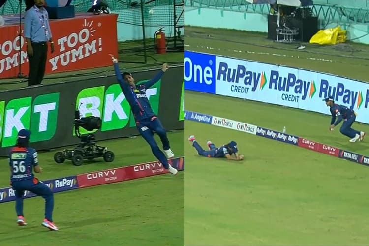 मिड-विकेट पर खड़े आयुष बदोनी ने गेंद को हवा में लपक लिया, लेकिन जैसे ही उन्हें एहसास हुआ कि वह बाउंड्री के बेहद करीब हैं, उन्होंने अपने शानदार रिफ्लेक्स का इस्तेमाल करते हुए गेंद को हवा में उछाल दिया. गेंद मैदान पर गिर ही जाती लेकिन पास में ही खड़े रवि बिश्नोई ने फुर्ती दिखाते हुए डाइव लगा दी और कैच पूरा किया. इस तरह दोनों खिलाड़ियों के शानदार तालमेल से प्रभसिमरन को पवेलियन लौटना पड़ा. इस कैच ने शानदार मोमेंट बनाया और इसे टूर्नामेंट के बेहतरीन कैचों में से एक माना जा रहा है. Lucknow Super Giants vs Punjab Kings.