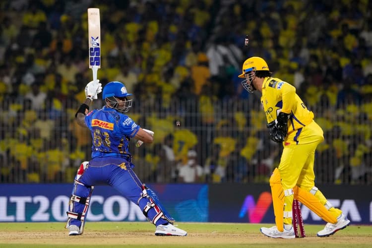 IPL 2025 के हाई-वोल्टेज मुकाबले में चेन्नई सुपर किंग्स (CSK) के स्पिनर नूर अहमद पूर्व कप्तान महेंद्र सिंह धोनी (MS Dhoni) की शानदार स्टंपिंग से हैरान रह गए. मुंबई इंडियंस (MI) के खिलाफ इस रोमांचक मैच में धोनी ने अपनी बिजली की तेजी वाली स्टंपिंग से एक बार फिर साबित कर दिया कि विकेट के पीछे उनका जादू अब भी बरकरार है. जब उन्होंने MI के स्टैंड-इन कप्तान सूर्यकुमार यादव (Surya Kumar Yadav) को पलक झपकते ही पवेलियन भेज दिया, तो चेपक का पूरा स्टेडियम झूम उठा. नूर अहमद ने धोनी के शानदार स्टंपिंग पर अपनी बात रखते हुए इसे आउट ऑफ द वर्ल्ड बताया. CSK vs MI