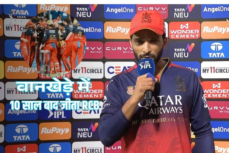 IPL 2025 MI vs RCB: रजत पाटीदार की अगुआई में आरसीबी लगातार धारणाएं तोड़ रही है और विपक्षी टीमों के गढ़ में जीत हासिल कर रही है. चेपॉक में 17 साल बाद चेन्नई सुपर किंग्स को हराने के बाद अब उन्होंने मुंबई इंडियंस को पहली बार वानखेड़े में हराया, वो भी 10 ओवरों के अंदर लक्ष्य का पीछा कर रही एक खतरनाक साझेदारी के बावजूद. तिलक वर्मा और हार्दिक पांड्या की धमाकेदार साझेदारी ने एक समय 222 रनों के लक्ष्य को आसान बना दिया था, लेकिन आरसीबी ने आखिरी वक्त पर वापसी की और मुंबई 209 रन ही बना सकी. मुंबई इंडियंस (MI) के खिलाफ 12 रन की जीत के बाद रॉयल चैलेंजर्स बेंगलुरु (RCB) के कप्तान रजत पाटीदार ने मुश्किल हालात में साहस दिखाने के लिए अपनी गेंदबाजी इकाई की जमकर तारीफ की और कहा कि ‘प्लेयर ऑफ द मैच’ का पुरस्कार असल में गेंदबाजों का है, जिन्होंने मुंबई जैसे बल्लेबाजों के अनुकूल मैदान पर रन रोकने का शानदार काम किया. Mumbai Indians vs Royal Challengers Bengaluru.