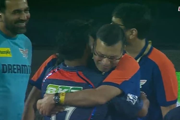 मैच के बाद गोयनका (Sanjiv Goenka) टिक नहीं पाए और उन्होंने पंत को कसकर गले लगा लिया. टीम के मेंटर जहीर खान इस दृश्य को देखकर मुस्कुराए बिना नहीं रह सके. इसके बाद तीनों ने पोस्ट-मैच प्रेजेंटेशन से पहले एक छोटी सी बातचीत की. इस घटना की तस्वीरें सोशल मीडिया पर धड़ल्ले से वायरल हो रही है. हालांकि इससे पहले दिल्ली कैपिटल्स के साथ हुए मैच में जब लखनऊ को हार मिली थी, तब भी उनकी बातचीत की फोटोज वायरल हुई थीं. हालांकि उनमें वैसी तल्खी नहीं थीं, जैसी केएल राहुल के समय हुई थी. Sanjiv Goenka Tight Hug to Rishabh Pant.