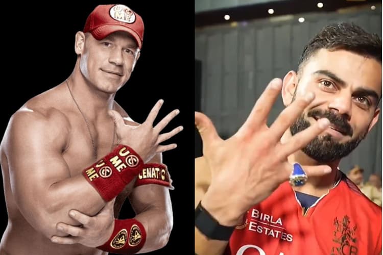 IPL 2025 Virat Kohli Imitates Jhon Cena: विराट कोहली वर्तमान क्रिकेट की दुनिया के सबसे बड़े सितारे हैं, ऐसा कहना अतिशयोक्ति नहीं होगा. क्योंकि उनके खेल के दीवाने पूरी दुनिया में हैं. चाहे ऑस्ट्रेलिया हो या इंग्लैंड या फिर अमेरिका और पाकिस्तान को भूलना बेमानी ही होगी. अपने क्रिकेटिंग कैरियर में उन्होंने मैदान के अंदर क्रिकेटिंग स्किल्स को दिखाया है तो मैदान के बाहर अपने स्टाइल से लोगों को अपना फैन बनाया है. इसी तरह का धमाकेदार परफॉर्मेंस उन्होंने अपने स्टाइल से दिया है. अब विराट कोहली RCB ड्रेसिंग रूम में जॉन सीना बने और उनका ‘यू कैन्ट सी मी’ वाला ऐक्शन दोहराते दिखे.