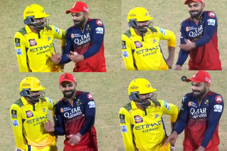 IPL 2025 के आठवें मुकाबले में चेन्नई सुपर किंग्स के प्रशंसकों के लिए नतीजा निराशाजनक रहा. सीएसके 17 साल बाद इस मैदान पर आरसीबी के खिलाफ हार झेलनी पड़ी. लेकिन विराट कोहली ने मैदान पर अपनी मस्ती और ऊर्जा से माहौल हल्का कर दिया. चेपक स्टेडियम में खेले गए इस मुकाबले में जब CSK रॉयल चैलेंजर्स बेंगलुरु के 197 रनों के लक्ष्य का पीछा करते हुए बिखर रही थी, तब कोहली अपनी चिर-परिचित शैली में दर्शकों का ध्यान खींचने में जुटे थे. विराट ने मैच के आखिरी लम्हों से थोड़ा पहले रवींद्र जडेजा के साथ हंसी मजाक करते हुए उन्हें चिढ़ाना शुरू कर दिया. Virat Kohli Teases Ravindra Jadeja.