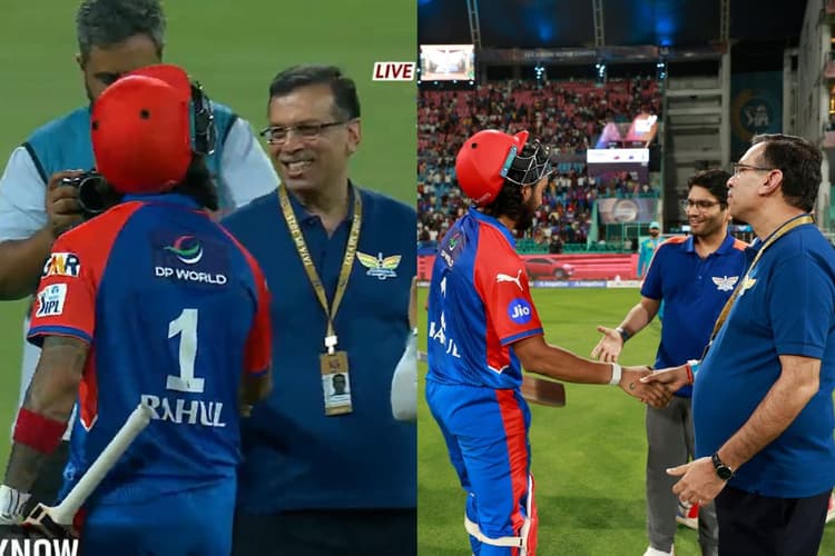 IPL 2025 DC vs LSG KL Rahul Met Sanjiv Goenka: लखनऊ के एकाना क्रिकेट स्टेडियम में लखनऊ सुपर जायंट्स से अपने अनौपचारिक विदाई के बाद केएल राहुल पहली बार खेलने उतरे. मंगलवार रात आईपीएल के 40वें मैच में वे एक विजेता के रूप में मैदान से बाहर लौटे. उन्होंने अपनी नई टीम दिल्ली कैपिटल्स के लिए नाबाद अर्धशतक जमाया और टीम को 8 विकेट से शानदार जीत दिलाई. हालांकि मैच के बाद जब राहुल एलएसजी के खिलाड़ियों से मिल रहे थे, वहीं उनकी मुलाकात टीम के मालिक संजीव गोएनका से हुई. लेकिन केएल राहुल और लखनऊ सुपर जायंट्स (LSG) के मालिक संजीव गोयनका के बीच पिछले साल का विवाद अभी भी समाप्त हुआ नहीं दिख रहा. संजीव गोएनका मुस्कुराते हुए मिलने आए, लेकिन राहुल के रिएक्शन ने सबकुछ बयान कर दिया.