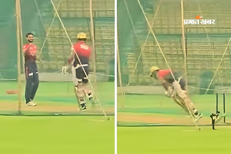 IPL 2026: इंडियन प्रीमियर लीग (IPL) के 19वे सीजन की शुरुआत 28 मार्च से होने जा रही है. टूर्नामेंट शुरू होने में अब बेहद कम समय बचा है. डिफेंडिंग चैंपियन रॉयल चैलेंजर्स बेंगलुरु (RCB) ने अपनी ट्रॉफी बचाने के लिए ट्रेनिंग शुरू कर दी है. टीम के सबसे मुख्य क्रिकेटर विराट कोहली लंबे ब्रेक के बाद लंदन से वापस आ गए हैं और स्क्वाड में शामिल हो गए हैं. एम चिन्नास्वामी स्टेडियम में अभ्यास के दौरान फास्ट गेंदबाज भुवनेश्वर कुमार की एक यॉर्कर गेंद पर विराट कोहली पूरी तरह से चकमा खा गए. इस अभ्यास का वीडियो सोशल मीडिया पर खूब देखा जा रहा है.