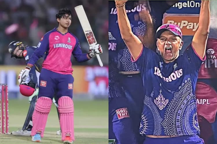 IPL 2025 Rahul Dravid Standing Ovation on Vaibhav Suryavanshi Century: महज 14 साल के वैभव सूर्यवंशी ने सवाई मानसिंह स्टेडियम में धमाल मचा दिया. उन्होंने गुजरात टाइटंस के गेंदबाजों की जमकर धुनाई करते हुए आईपीएल इतिहास के सबसे युवा शतकवीर बनने का गौरव हासिल किया. समस्तीपुर से आने वाले तूफानी खिलाड़ी वैभव ने महज 35 गेंदों में अपना पहला शतक पूरा किया और राजस्थान रॉयल्स के लिए शानदार पारी खेली. उनके इस शतक के बाद पूरा स्टेडियम सम्मान में उठ खड़ा हुआ. सबसे आश्चर्य राहुल द्रविड़ की ओर से आया. अपने पैर की चोट को भूलकर द्रविड़ ने उठकर वैभव की पारी का तालियों से स्वागत किया.