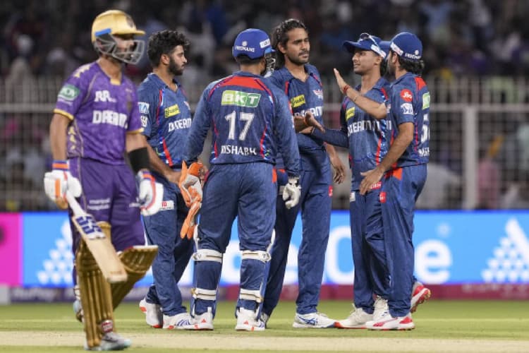 KKR की ओर से आंद्रे रसेल ने 45 रन देकर 1 विकेट लिया, लेकिन बाकी गेंदबाज महंगे साबित हुए. 239 रनों के विशाल लक्ष्य का पीछा करने उतरी KKR की शुरुआत भी शानदार रही. सुनील नरेन और अजिंक्य रहाणे ने पावरप्ले में आक्रामक बल्लेबाजी करते हुए 6 ओवर में 90 रन जोड़े. नरेन ने 13 गेंदों में 30 रन बनाए, लेकिन दिग्वेश राठी ने उन्हें लॉन्ग-ऑफ पर कैच आउट कराकर LSG को पहली सफलता दिलाई. रहाणे ने 61 रनों की तेज पारी खेली, लेकिन शार्दुल ठाकुर ने उन्हें आउट कर LSG को खेल में वापस ला दिया.