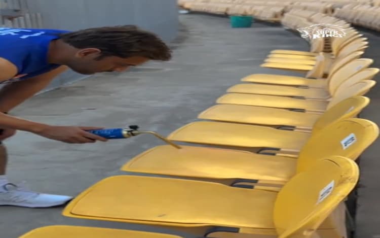 चेन्नई सुपर किंग्स इस बार आईपीएल 2023 में अपने होम ग्राउंड चेपॉक में अपने मुकाबले खेलते हुए नजर आएगी. यह पूरे तीन साल के बाद होगा जब सीएसके अपने होमग्राउंड पर एक्शन में नजर आएगी. चेन्नई की टीम तीन अप्रैल को अपने होम ग्राउंड पर पहला मुकाबला खेलेगी. वहीं इस मैच से पहले चेन्नई सुपर किंग्स के कप्तान महेंद्र सिंह धोनी फैंस का वेलकम करने के लिए खास अंदाज में तैयारी करते हुए नजर आएं हैं. दरअसल, धोनी स्टेडियम की सीटों को पेंट करते हुए दिखे हैं. माही स्टेडियम की सीटों को येलो पेंट करते हैं. वहीं सोशल मीडिया पर अब महेंद्र सिंह धोनी का यह दिल जीत लेने वाला वीडियो तेजी से वायरल हो रहा है. फैंस को धोनी का यह वीडियो काफी पसंद आ रहा है. वहीं वह धोनी की जमकर प्रशंसा कर रहे हैं.