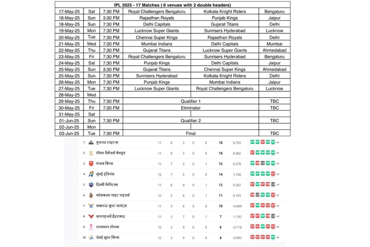 रीस्टार्ट IPL 2025 के प्लेऑफ समीकरण: 7 टीमें रेस में, कौन-कैसे पहुंचेगा टॉप 4 में? देखें