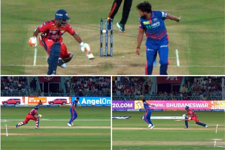 ऋषभ पंत को दिल्ली कैपिटल्स के किसी भी गेंदबाज ने अपनी गेंद पर आउट नहीं किया. तीसरे ओवर की आखिरी गेंद पर यह घटना घटी. दिल्ली के तेज गेंदबाज मुकेश कुमार गेंदबाजी कर रहे थे. स्ट्राइक पर मौजूद मिचेल मार्श ने मुकेश की गेंद पर सामने की तरफ एक जोरदार शॉट खेला. गेंदबाज मुकेश कुमार ने गेंद को कैच करने का प्रयास किया.