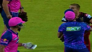 जब रियान पराग ने हर्षल पटेल के आखिरी ओवर में 18 रन जड़ दिया, तो दोनों के बीच कहासुनी हुई. पराग ने 31 गेंद में 56 रन की पारी खेली. उन्होंने आखिरी ओवर में पटेल को एक चौका और दो छक्के जड़े. पराग ने जैसे ही डीप मिडविकेट बाउंड्री पर पटेल को चौका जड़ा, दोनों खिलाड़ियों के बीच बहस हो गई. इसके बाद रॉयल्स के एक खिलाड़ी को बीच बचाव करना पड़ा. मैदान से जाते समय दोनों टीमों के खिलाड़ियों के बीच भी बहस हुई. पटेल ने चार ओवर में 33 रन देकर एक विकेट लिया.