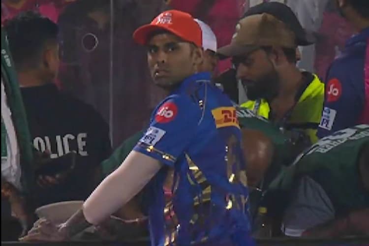 RR vs MI: मुंबई इंडियंस (MI) ने गुरुवार को राजस्थान रॉयल्स (RR) को उसके होम ग्राउंड में 100 रनों से हरा दिया है. इस जीत के साथ ही एमआई की टीम अंक तालिका में टॉप पर पहुंच गई और आरआर प्लेऑफ की रेस से बाहर हो गई. चेन्नई सुपर किंग्स (CSK) के बाद आरआर दूसरी टीम बन गई है जो इस टूर्नामेंट की प्लेऑफ से बाहर हुई है. गुरुवार को सवाई मानसिंह स्टेडियम में टॉस हारकर पहले बल्लेबाजी करने उतरी एमआई की टीम ने आरआर को जीत के लिए 218 रनों का लक्ष्य दिया, लेकिन आरआर की टीम 16.1 ओवर में 117 के स्कोर पर ढेर हो गई. एमआई ने रनों के हिसाब से इस सीजन की सबसे बड़ी जीत दर्ज की. Where is ball Suryakumar Yadav got upset while searching scene of street cricket in RR vs MI match