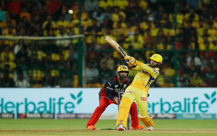 RCB vs CSK, IPL 2023 Highlights: चेन्नई सुपर किंग्स ने आईपीएल 2023 के 24वें मुकाबले में रॉयल चैलेंजर्स बैंगलोर को 8 रन से हरा दिया है. बैंगलुरु के एम चिन्नास्वामी स्टेडियम में खेले गए इस मैच में चेन्नई की टीम ने पहले खेलते हुए 6 विकेट पर 226 रनों का विशाल स्कोर खड़ा किया था. जवाब में आरसीबी की टीम 8 विकेट खोकर 218 रन ही बना सकी. आरसीबी के कप्तान फाफ डुप्लेसीस की 62 रनों की पारी बेकार गई. इससे पहले सीएसके के लिए डेवोन कॉनवे ने सर्वाधिक 85 रनों की धमाकेदार पारी खेली. जबकि शिवम दुबे ने 52 रन बनाए. बता दें कि चेन्नई की यह सीजन में तीसरी जीत है. जबकी आरसीबी की यह तीसरी हार है.
