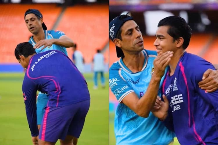 Vaibhav Suryavanshi Touches Feet: आईपीएल 2026 (IPL 2026) में राजस्थान रॉयल्स (RR) के 15 साल के बल्लेबाज वैभव सूर्यवंशी अपने खेल और व्यवहार से लगातार चर्चा में हैं. उनकी बैटिंग के साथ-साथ उनके संस्कार भी लोगों को काफी पसंद आ रहे हैं. हाल ही में सोशल मीडिया पर एक वीडियो सामने आया है. इस वीडियो में वैभव गुजरात टाइटंस (GT) के हेड कोच आशीष नेहरा (Ashish Nehra) के पैर छूते हुए दिखाई दे रहे हैं. इतनी कम उम्र में आईपीएल जैसे बड़े मंच पर नाम कमाने के बाद भी वैभव की सादगी फैंस का दिल जीत रही है. वह अपने शानदार खेल के दम पर क्रिकेट जगत में एक नया मुकाम बना रहे हैं.