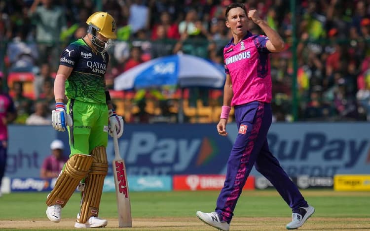 विराट कोहली को ट्रेंट बोल्ट ने एलबीडब्ल्यू आउट कर दिया. आरसीबी आज अपने घर में पर्यावरण बचने के संदेश के साथ हरी जर्सी में खेल रही है. बोल्ट ने 2019 विश्व कप में भी कोहली को डोल्डन डक पर आउट कर दिया है. यह घटना मैच के पहले ही ओवर में हुआ जब राजस्थान के कप्तान संजू सैमसन ने टॉस जीता और बेंगलुरु में पहले गेंदबाजी करने का फैसला किया. बोल्ट ने अपने ट्रेडमार्क इनस्विंगर पर कोहली को आउट किया.
