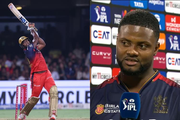 IPL 2025 CSK vs RCB- Romario Shepherd Comment After Heroic Innings: रोमारियो शेफर्ड ने शनिवार को एम. चिन्नास्वामी स्टेडियम में चेन्नई सुपर किंग्स के खिलाफ अपनी विस्फोटक बल्लेबाजी से इंडियन प्रीमियर लीग के इतिहास में दूसरी सबसे तेज फिफ्टी जमाई. डेथ ओवर्स में बल्लेबाजी के लिए आए शेफर्ड ने महज 14 गेंदों में तूफानी अंदाज में 53 रन बनाते हुए बेंगलुरु के घरेलू दर्शकों को रोमांच से झूमने पर मजबूर कर दिया. उनकी दमदार हिटिंग ने स्टेडियम का माहौल बदल दिया. उनकी इस पारी की बदौलत आरसीबी 18 ओवर में 159 रन से 20 ओवर में 213 रन पर पहुंच गई. इस लक्ष्य के जवाब में सीएसके ने भी गजब का संघर्ष दिखाया और 20 ओवर में अंतिम गेंद तक 211 रन बनाए, लेकिन 2 रन से मुकाबला हार गई. इस धमाकेदार पारी के लिए उन्हें प्लेयर ऑफ द मैच का खिताब दिया गया. मैच के बाद उन्होंने अपनी पारी पर बात की. Royal Challengers Bengaluru vs Chennai Super Kings.