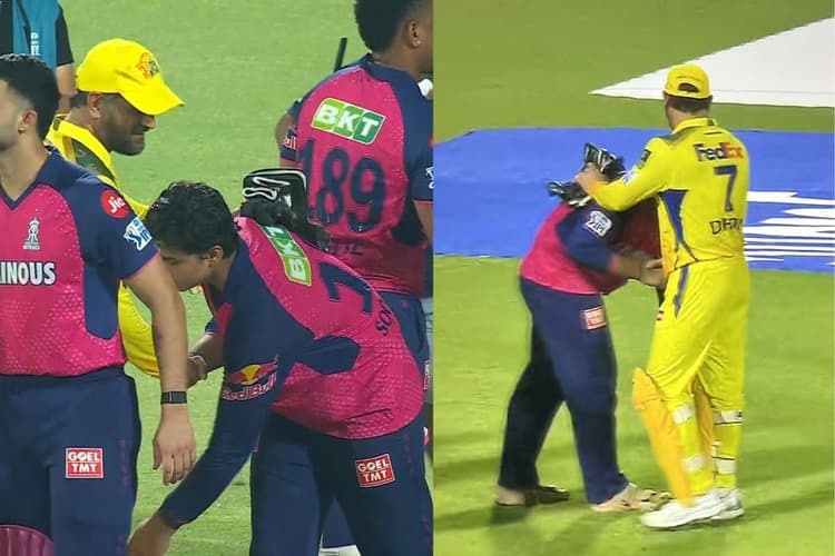 IPL 2025 CSK vs RR Vaibhav Suryavanshi Touches MS Dhoni Feet: राजस्थान रॉयल्स ने मंगलवार, 20 मई को आईपीएल 2025 के सीजन का अपना आखिरी मैच खेला. चेन्नई सुपर किंग्स के खिलाफ राजस्थान ने 6 विकेट से जीत दर्ज की. हालांकि लीग के 18वें सीजन में उनकी सफर अच्छा नहीं रहा और वे 14 मैचों में केवल 4 जीत ही दर्ज कर पाए और 10 हार के साथ 9वें स्थान पर रहे. हालांकि उनके लिए इस सीजन की खोज रहे 14 वर्षीय वैभव सूर्यवंशी. उन्होंने केवल 7 मैचों में ही धमक दिखा दी. वैभव सूर्यवंशी ने चेन्नई सुपर किंग्स (CSK) के खिलाफ इस मैच में भी 188 रन के लक्ष्य का पीछा करते हुए राजस्थान रॉयल्स (RR) की ओर से पारी की शुरुआत की और 33 गेंदों में 57 रन की शानदार पारी खेली. बिहार से आने बाएं हाथ के बल्लेबाज सूर्यवंशी ने अपनी पारी के दौरान 4 चौके और 4 छक्के लगाए और राजस्थान का आईपीएल 2025 का अभियान शानदार जीत के साथ समाप्त करने में अहम भूमिका निभाई. मैच के बाद वैभव के संस्कारों ने लोगों का दिल जीत लिया, जब उन्होंने एमएस धोनी के पैर छुए.