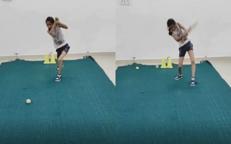 Viral Video of Young Girl Batting Practice: सोशल मीडिया पर आए दिन एक से बढ़कर एक वीडियो वायरल होते रहते हैं. खासतौर पर क्रिकेट के मैदान के वीडियो फैंस को खूब पसंद आते हैं. ऐसा ही एक वीडियो सोशल मीडिया पर इन दिनों तेजी से वायरल हो रहा है. इस वीडियो में एक बच्ची बैटिंग प्रैक्टिस करते हुए नजर आ रही है. इस वीडियो में उसके बैटिंग के दौरान लगाए गए शॉट्स चर्चा का विषय बना हुआ है. वायरल हो रहे इस वीडियो में वह भारत के दिग्गज बल्लेबाज विराट कोहली की तरह कवर ड्राइव और पूर्व महान कप्तान महेंद्र सिंह धोनी के अंदाज में हेलिकॉप्टर शॉट लगते हुए नजर आ रही है.