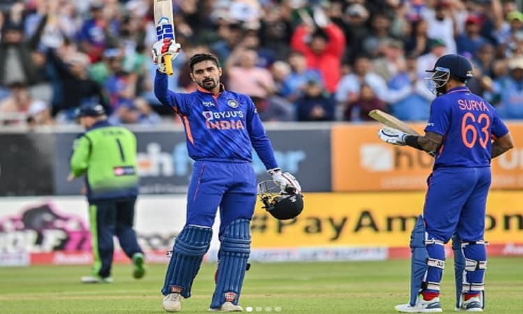 दीपक हुड्डा ने आयरलैंड दौरे पर टी20 अंतरराष्ट्रीय में पहला शतक जमाया. दूसरे टी20 में उन्होंने 57 गेंदों में 9 चौकों और 6 छक्कों की मदद से कुल 104 रन बनाये. इसके साथ ही हुड्डा ने विराट कोहली को भी इस मामले में पीछे छोड़ दिया. कोहली का टी20 अंतरराष्ट्रीय में एक भी शतक नहीं है. हुड्डा शतक जमाने के साथ रोहित शर्मा, केएल राहुल और सुरेश रैना के क्लब में शामिल हो गये.