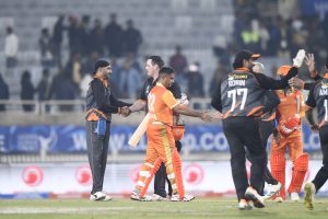 लेकिन रजत गेंद से कमाल करने के लिए तैयार थे. उन्होंने अगले ही ओवर में सेट बल्लेबाज रोबिन उथप्पा (23 रन) को चलता किया, जिससे स्कोरकार्ड 83/3 पर पहुंच गया. सर्बजीत लड्डा ने भी रजत भाटिया का बखूबी साथ दिया और विपक्षी टीम की गति पर रोक लगाया. इस बीच लड्डा ने 91 के टीम स्कोर पर कोलिन डी ग्रेंडहोम (8 रन) का विकेट चटकाया. रजत ने अपने इसी स्पैल के तीसरे ओवर और पारी के 13वें ओवर में कायल कोर्ट्ज (9 रन) को बोल्ड कर आधी टीम को 104 पर संघर्ष करने पर मजबूर कर दिया.