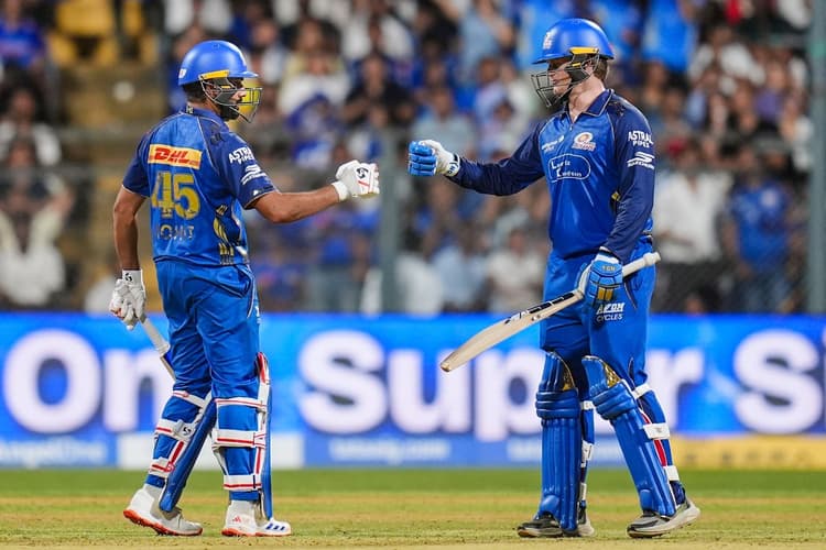 रविवार 29 मार्च को मुंबई के वानखेड़े स्टेडियम में मुंबई और केकेआर के बीच मुकाबला खेला गया. मुंबई ने टॉस जीता और कोलकाता को पहले बैटिंग के लिए बुलाया. पहले बैटिंग करते हुए केकेआर ने 4 विकेट खोकर 220 रन बनाया. जिसमें कप्तान अजिंक्या रहाणे ने 67 और अंगकृष रघुवंशी ने 51 रन की अर्धशतकीय पारी खेली. फिन एलन ने 37, कैमरून ग्रीन 18 और रिंकू सिंह ने नाबाद 33 रन बनाए. जवाब में मुंबई की टीम ने 19.1 ओवर में 4 विकेट गंवाकर 224 रन बनाया और मैच अपने नाम कर लिया. मुंबई की ओर से रोहित शर्मा ने 38 गेंदों में 6 चौके और 6 छक्कों की मदद से 78 रन बनाए. जबकि रिकलटन ने 43 गेंदों का सामना किया, जिसमें 4 चौके और 8 छक्कों की मदद से 81 रन की शानदार पारी खेली.